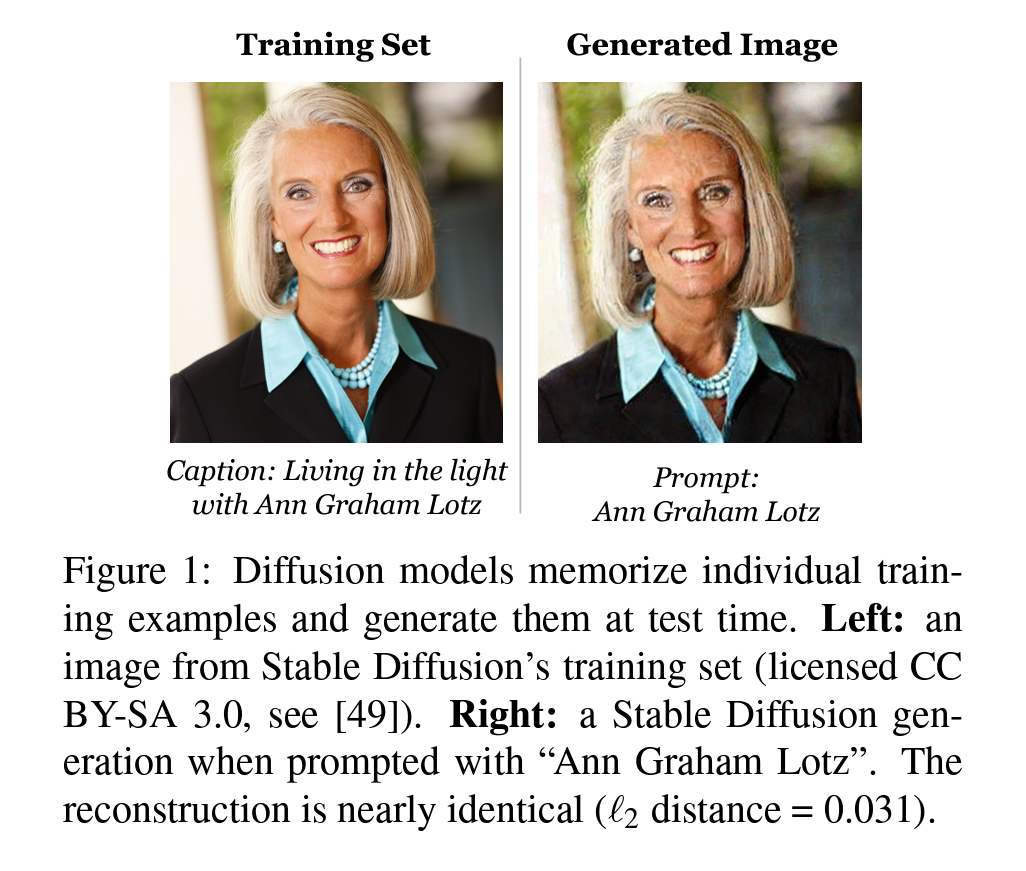 - Extracting Training Data from Diffusion Models (Nicholas Carlini et al., Arxiv 2023)